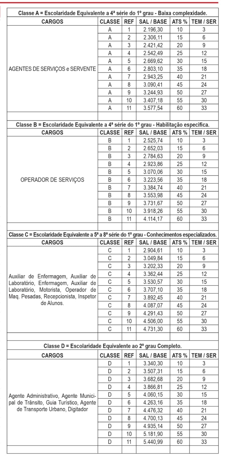 Veja as novas tabelas salariais abaixo…